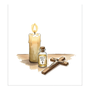Through this holy anointing may the Lord in his love and mercy help you with the grace of the Holy Spirit. May the Lord who frees you from sin save you and raise you up.